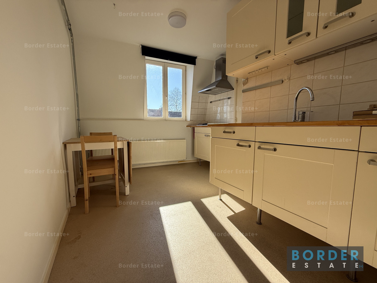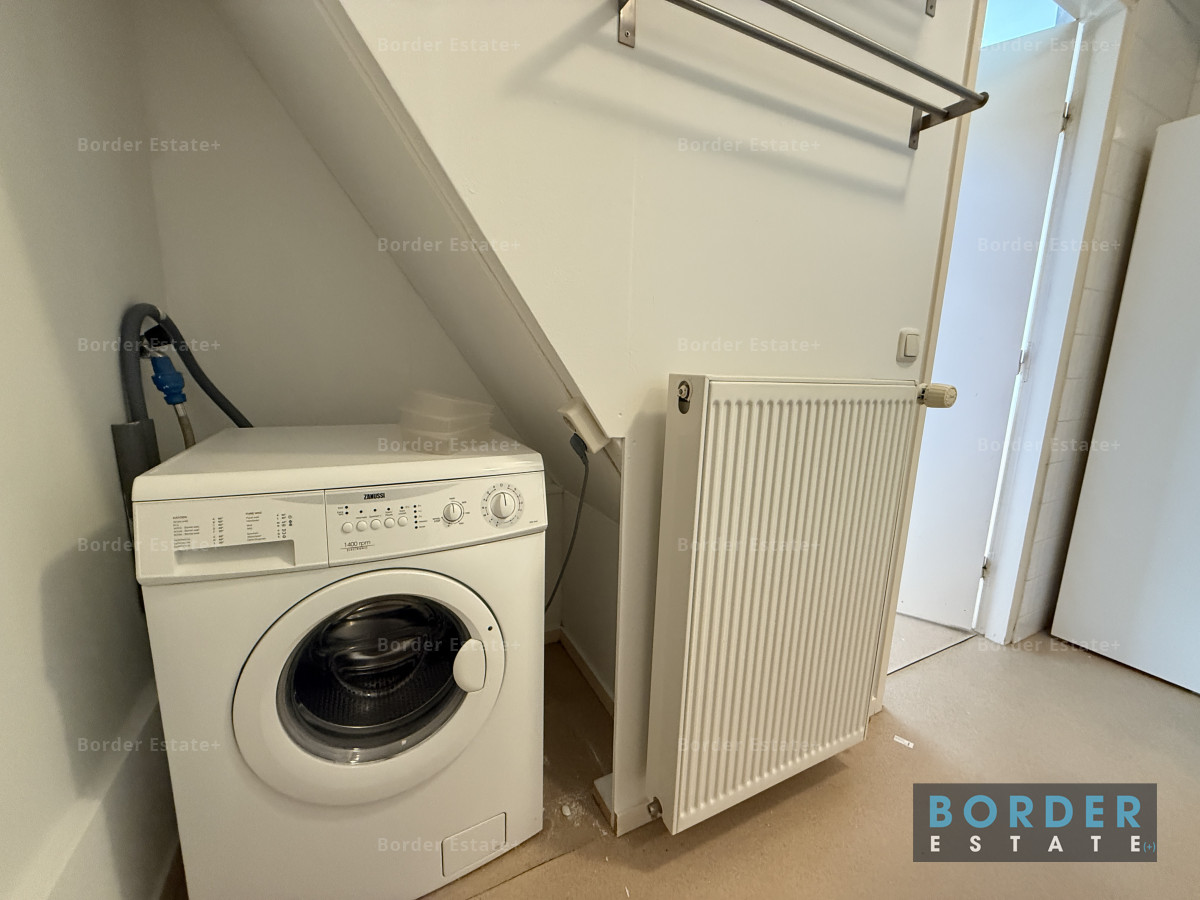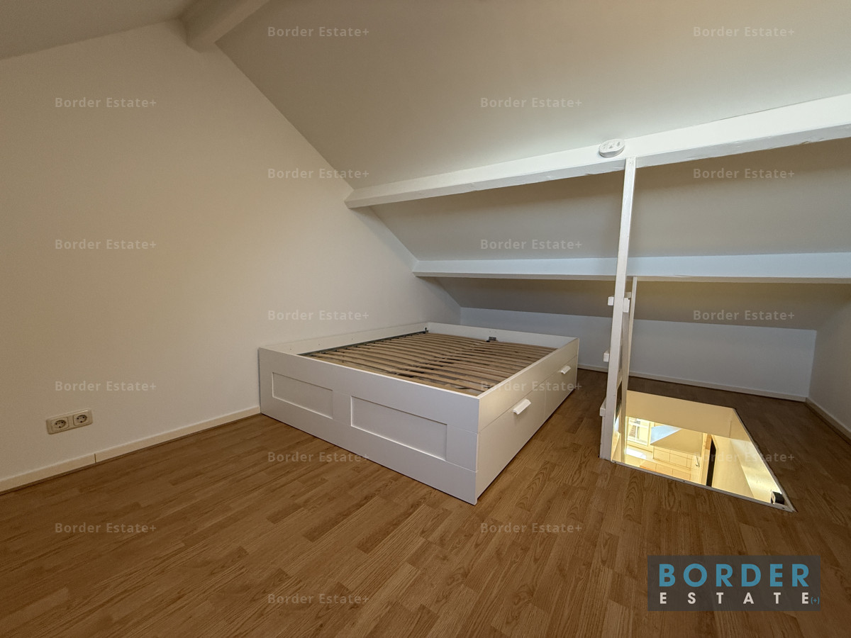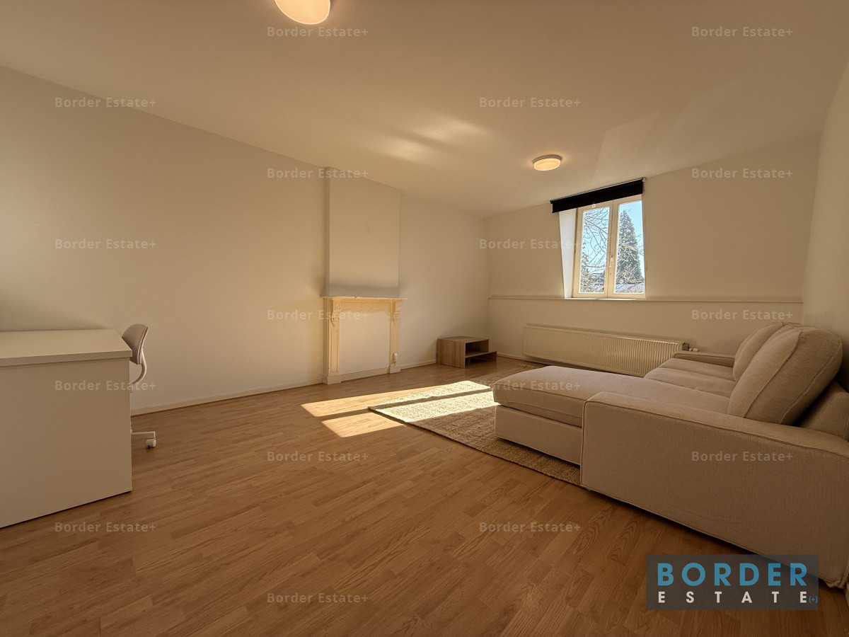 De slaapruimte bevindt zich op de vide en geeft het appartement een speels en knus karakter. Het is een fijne, rustige plek om je terug te trekken na een lange dag. Vanuit de woning kijk je uit over de charmante bebouwing en het groen van de omgeving, wat het gevoel van wonen in Sint-Pieter extra bijzonder maakt.