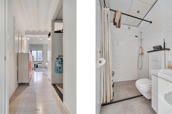 De slaapkamer is royaal van opzet en biedt ruimte aan een tweepersoonsbed en een garderobe. De badkamer is verzorgd afgewerkt en voorzien van een douche, wastafel en toilet. Daarnaast beschikt het appartement over een apart gastentoilet.