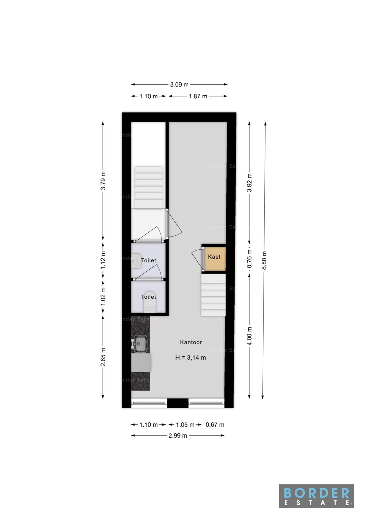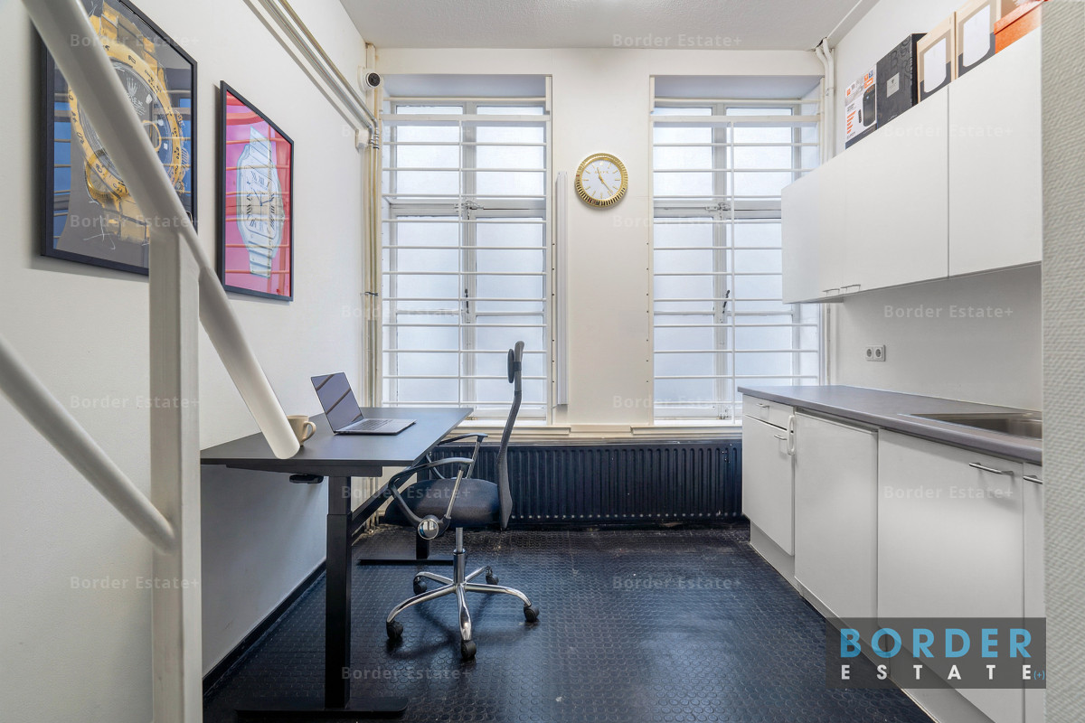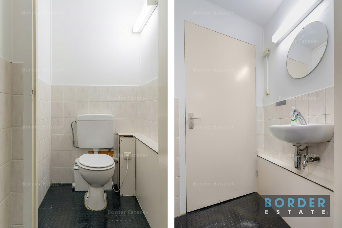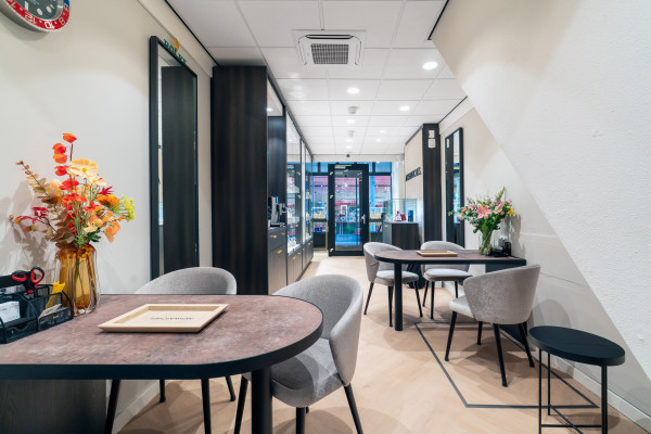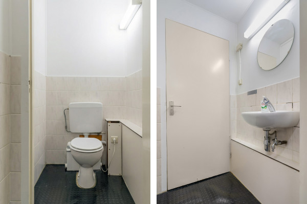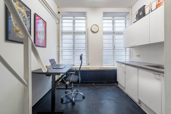 De eerste verdieping fungeert als ondersteunende ruimte en is ingericht met kantoorruimte, pantry en twee toiletten. Deze verdieping heeft een vrije hoogte van circa 3,14 meter en is geschikt als backoffice, aanvullende verkoopruimte of interne werkruimte.