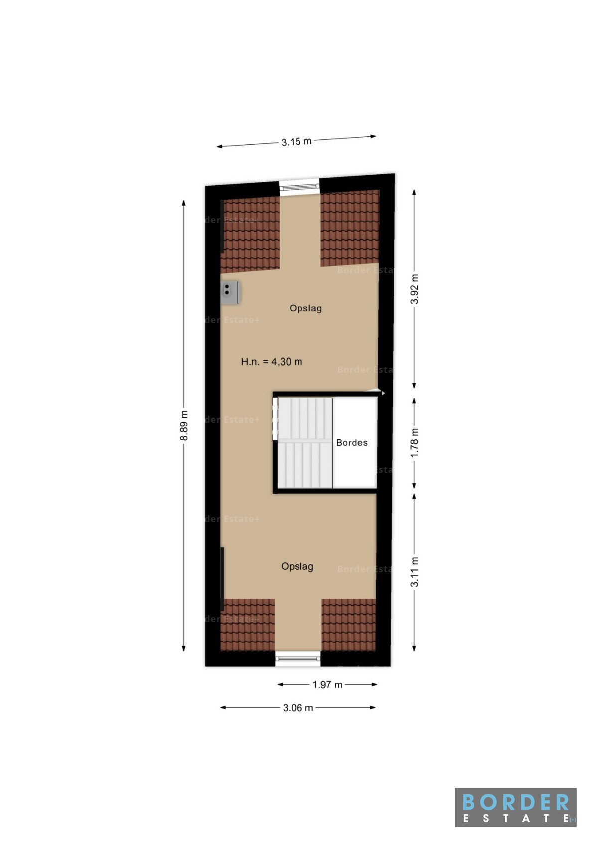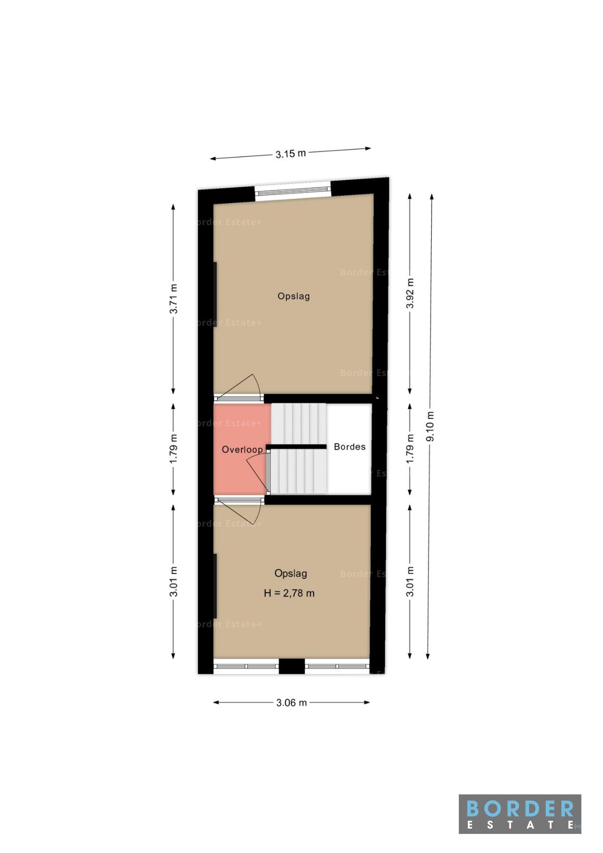 De tweede en derde verdieping zijn in gebruik als opslagruimte. De tweede verdieping heeft een vrije hoogte van circa 2,78 meter en is verdeeld in twee opslagruimten met overloop. De derde verdieping betreft een kapverdieping met open opslagruimte en een nokhoogte van circa 4,30 meter, hetgeen extra opslagvolume biedt.