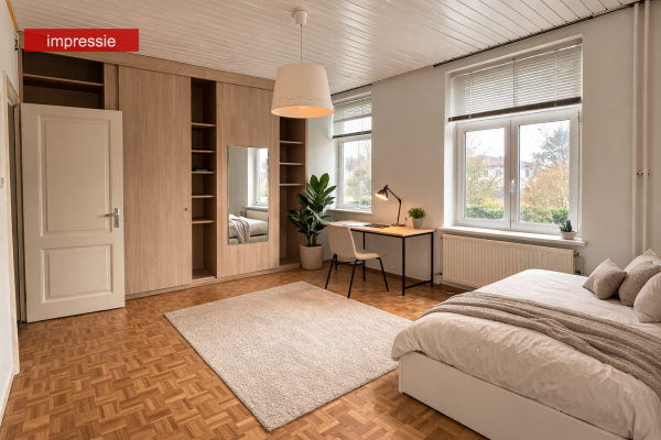 De kamer beschikt over een nette parketvloer en strak afgewerkte wanden, wat zorgt voor een verzorgde basis. De ruimte is praktisch in te richten en biedt voldoende plek voor een bed, bureau en kast. Daarnaast is er een ingebouwde kast aanwezig, wat zorgt voor extra opbergruimte.