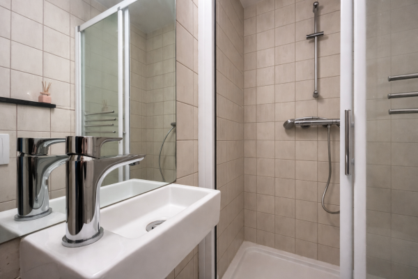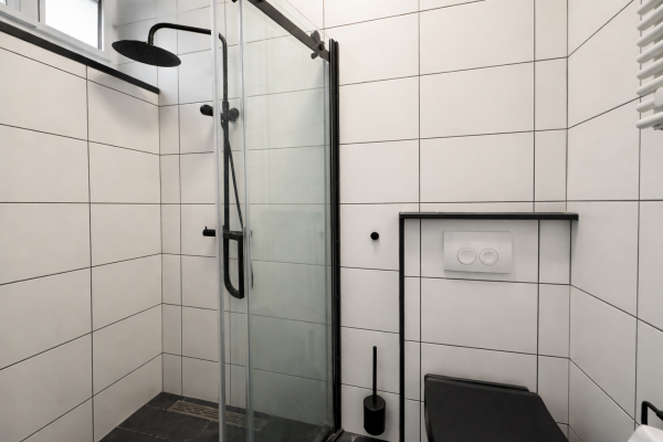 De moderne, gedeelde keuken is volledig uitgerust met alle benodigde faciliteiten, en biedt een fijne plek om te koken en samen te komen. Daarnaast zijn er twee gedeelde badkamers met douche, toilet en wastafel, die modern en goed onderhouden zijn.
