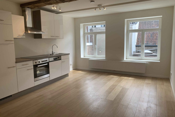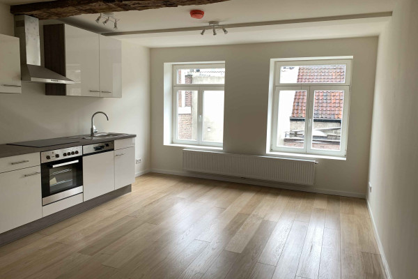 In het centrum van Maastricht, aan de Jodenstraat, ligt deze volledig gerenoveerde studio (ca. 32 m² totaal) in een karakteristiek monumentaal pand.