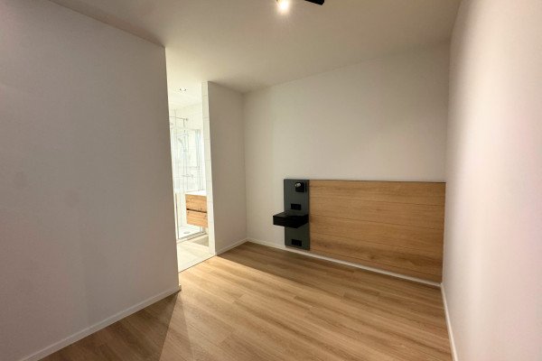 - Slaapruimte afgescheiden van leefruimte en gang door houten shutter