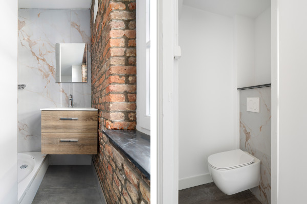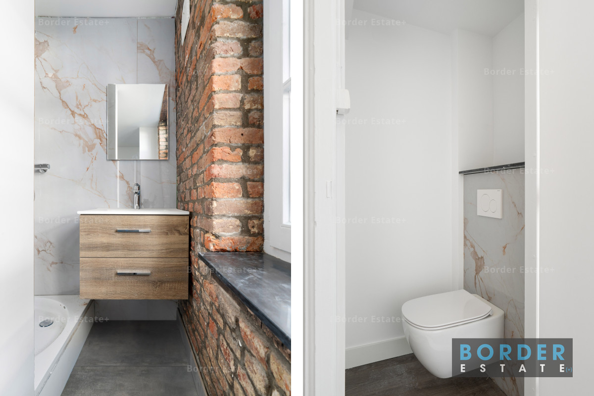 - Authentic features including exposed brick walls, wooden beams and fireplace