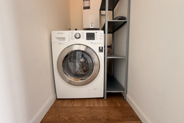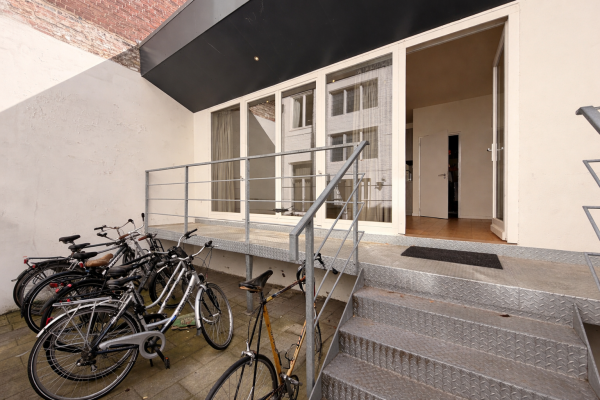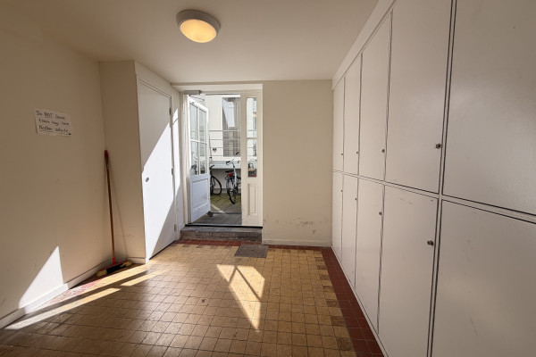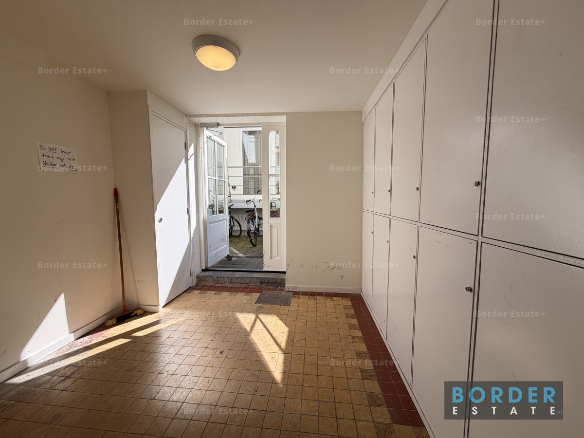 Additionally, each resident has their own private, lockable storage unit in the basement. Shared laundry facilities (coin-operated) are also available there. At the rear of the building, there is a designated bicycle parking area—definitely a plus in the city center.