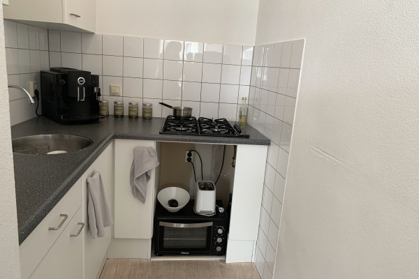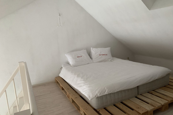 The L-shaped kitchen is fully equipped and offers everything you need. The apartment includes one separate bedroom as well as a mezzanine level, which can be used perfectly as an additional sleeping area or workspace.