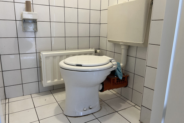 The property features a shared kitchen, which is functionally equipped with the necessary appliances. There is also a neat bathroom with both a shower and a bathtub. In addition, the house has two separate toilets, providing extra convenience.