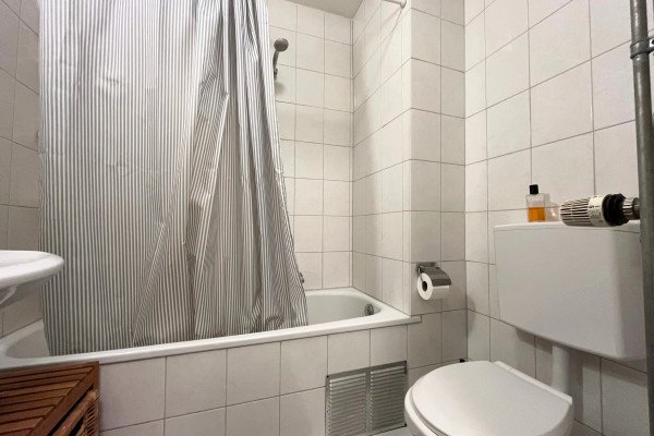 The room is part of an apartment with a total of three rooms. The kitchen and bathroom are shared with two other tenants. The kitchen is modern and practical, offering ample space for cooking and dining together. The bathroom is well-kept and equipped with a bath/shower, toilet and washbasin. The shared areas are tidy and functional, ensuring a pleasant living environment with the other residents.