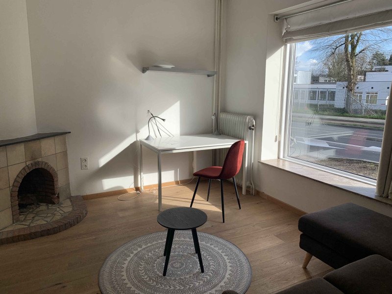 The available room is on the ground floor and exudes a warm, homely atmosphere, thanks to its authentic fireplace. This characterful house features a basement, heated garage, living room, dining room, kitchen, toilet, bathroom with an additional toilet, and four private bedrooms. The generous backyard, approximately 50 meters deep, offers plenty of space to enjoy the outdoors.