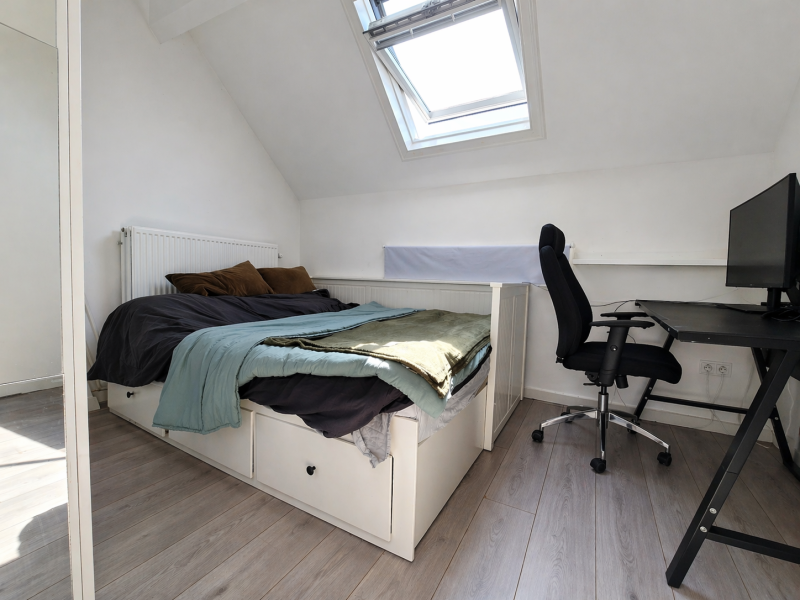 The room is situated on the first floor of a beautiful, characterful building and offers plenty of space. It is rented unfurnished, giving you the freedom to decorate it entirely to your own taste. The house is shared with 11 other residents in total. There are three shared bathrooms, three toilets, two communal kitchens, and a shared washing machine available for use. This way, you have all the necessary facilities within easy reach!