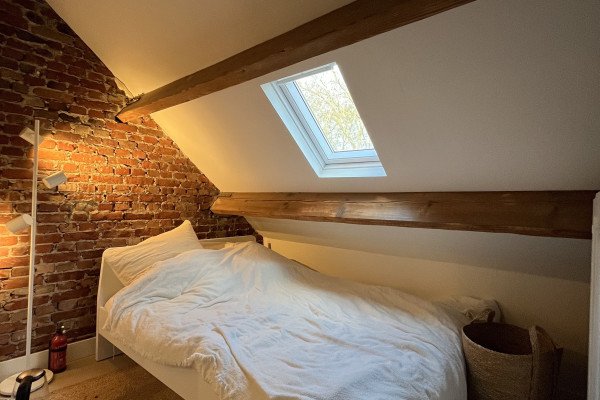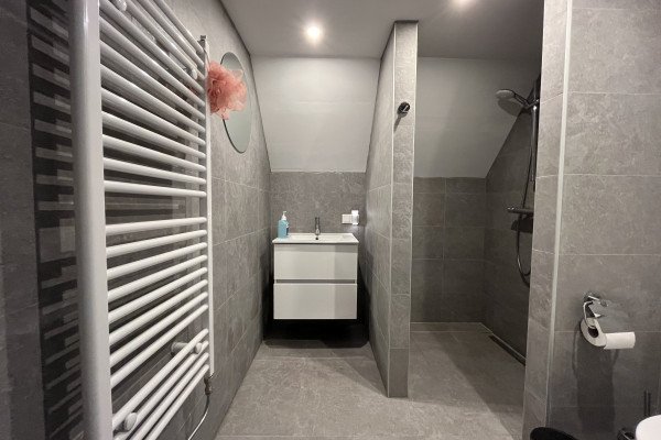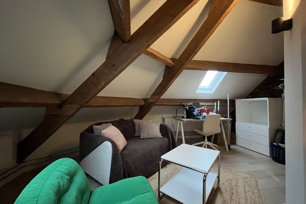 This beautiful 22 m² room offers a modern and cozy living space, perfect for students. Located on the top floor, the room is smartly divided into a living area and a sleeping area, separated by a wall for added privacy. The room features a private bathroom, equipped with modern tiles, a shower, sink, and toilet.