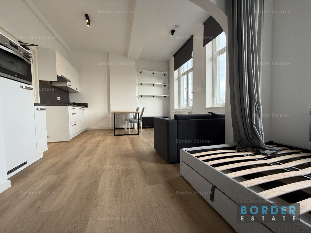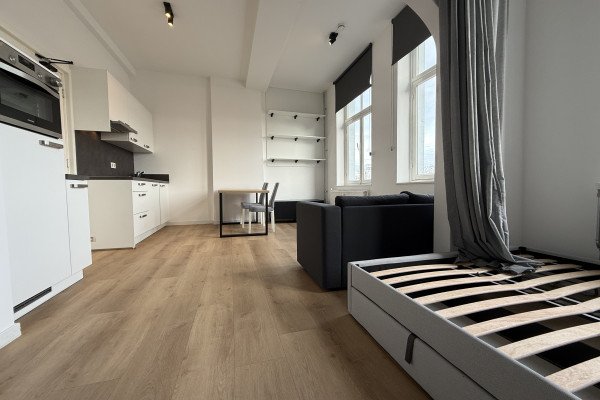Right on the banks of the River Meuse, overlooking the iconic Sint Servaas Bridge, you’ll find this charming studio. Large windows flood the living space with natural light and create a warm, inviting atmosphere. The living room offers enough space for a comfortable sitting area and dining table, perfect for enjoying a meal or entertaining friends. The modern open kitchen blends seamlessly into the room and is fully equipped with a hob, oven, extractor, and fridge.